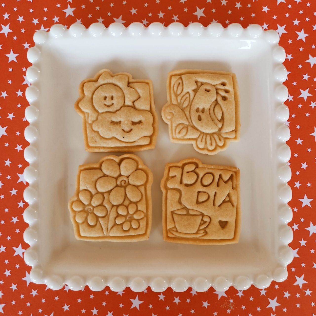 As peças podem ser usadas para cortar e marcar biscoitos e pasta americana.