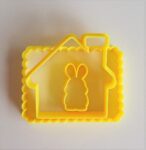 Kit de cortadores. Contém: 3 cortadores incluindo base, fachada e coelhinho.