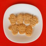 As peças podem ser usadas para cortar e marcar biscoitos e pasta americana.