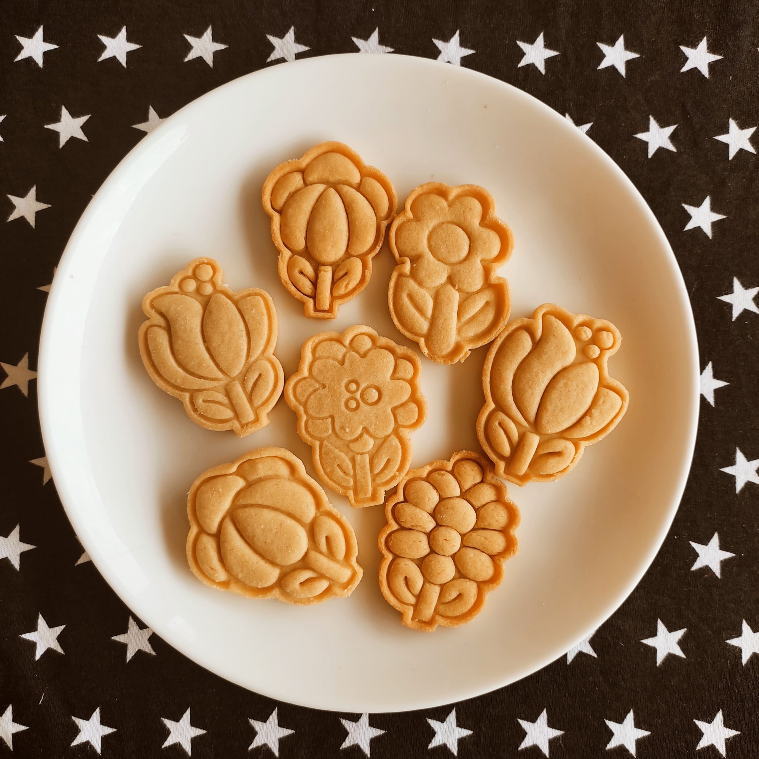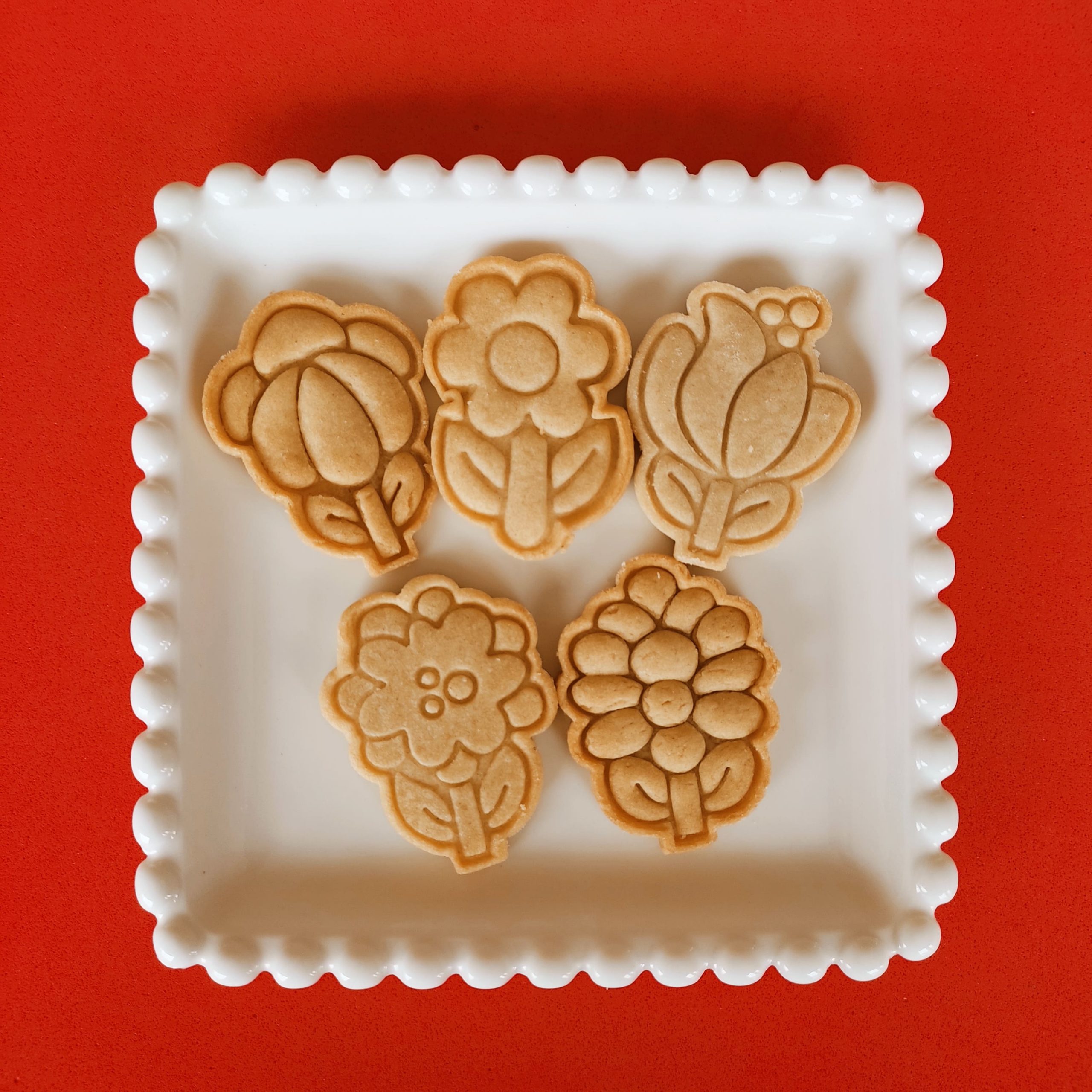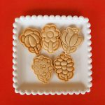 As peças podem ser usadas para cortar e marcar biscoitos e pasta americana.