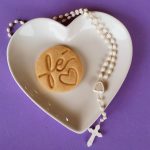 Placa ‘Fé’ em formato de coração. Contém: 1 cortador + 1 marcador = Total de 2 peças.